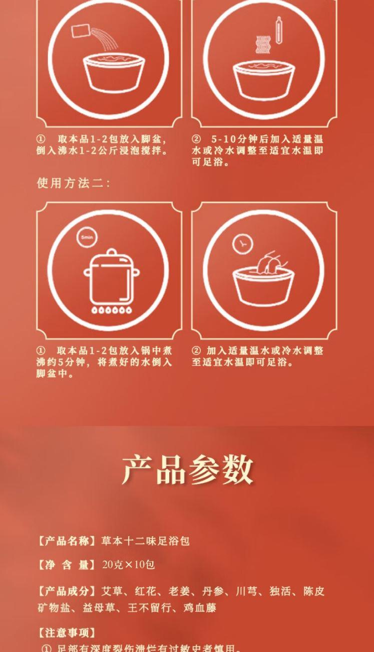 禮盒尺寸:230*120*150mm 裝箱數量:48盒/箱 外箱尺寸:46*62.5*60cm 產品內置:草本足浴包20g/袋*10袋